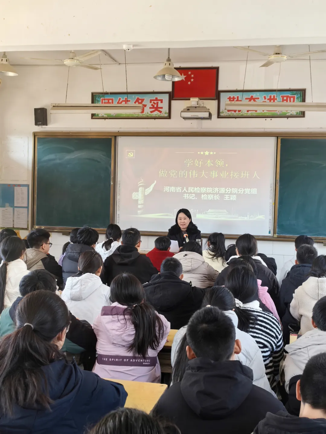 为深入学习宣传贯彻党的二十届四中全会精神,落实好领导干部带头讲思政课要求,厚植青少年爱党爱国情怀,助力扣好人生“第一粒扣子”。12月4日上午,河南省人民检察院济源分院分党组书记、检察长王颖走进大峪二中,宣讲党的二十届四中全会精神,并为莘莘学子讲授了一堂主题鲜明、精彩生动的思政课。